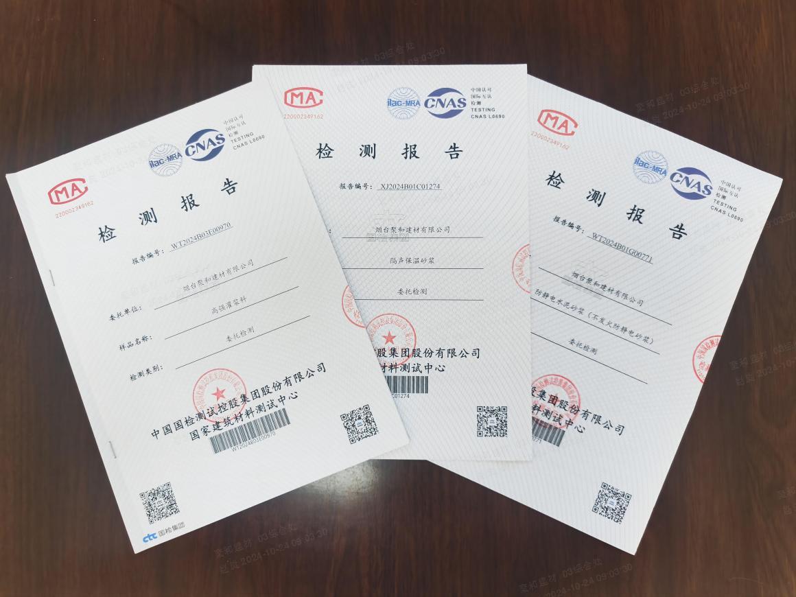 • 聚和建材三大特種砂漿產品順利通過…